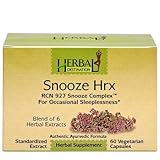 The synergistic benefits of Herbal Destination's Snooze Hrx (850 mg) with effective herbal extracts of Rauwolfia, Aloe Weed, Jatamansi (Spikenard), Indian Valerian, Bacopa and Long Pepper are exceptional.---------- This ancient, authentic formula meets and or exceeds American Herbal Products Association's (AHPA) standards for heavy metals as well as California standards.---------- Non-GMO: This product is made from ingredients that were not genetically engineered.---------- Each box contains 60 Vegetarian Capsules with a serving size of 2 capsules per day.----------- This product Promotes restful sleep, Relieves occasional stress, Reduces nervous irritability, Promotes healthy mood levels, Helps to relax by calming mind and body.*